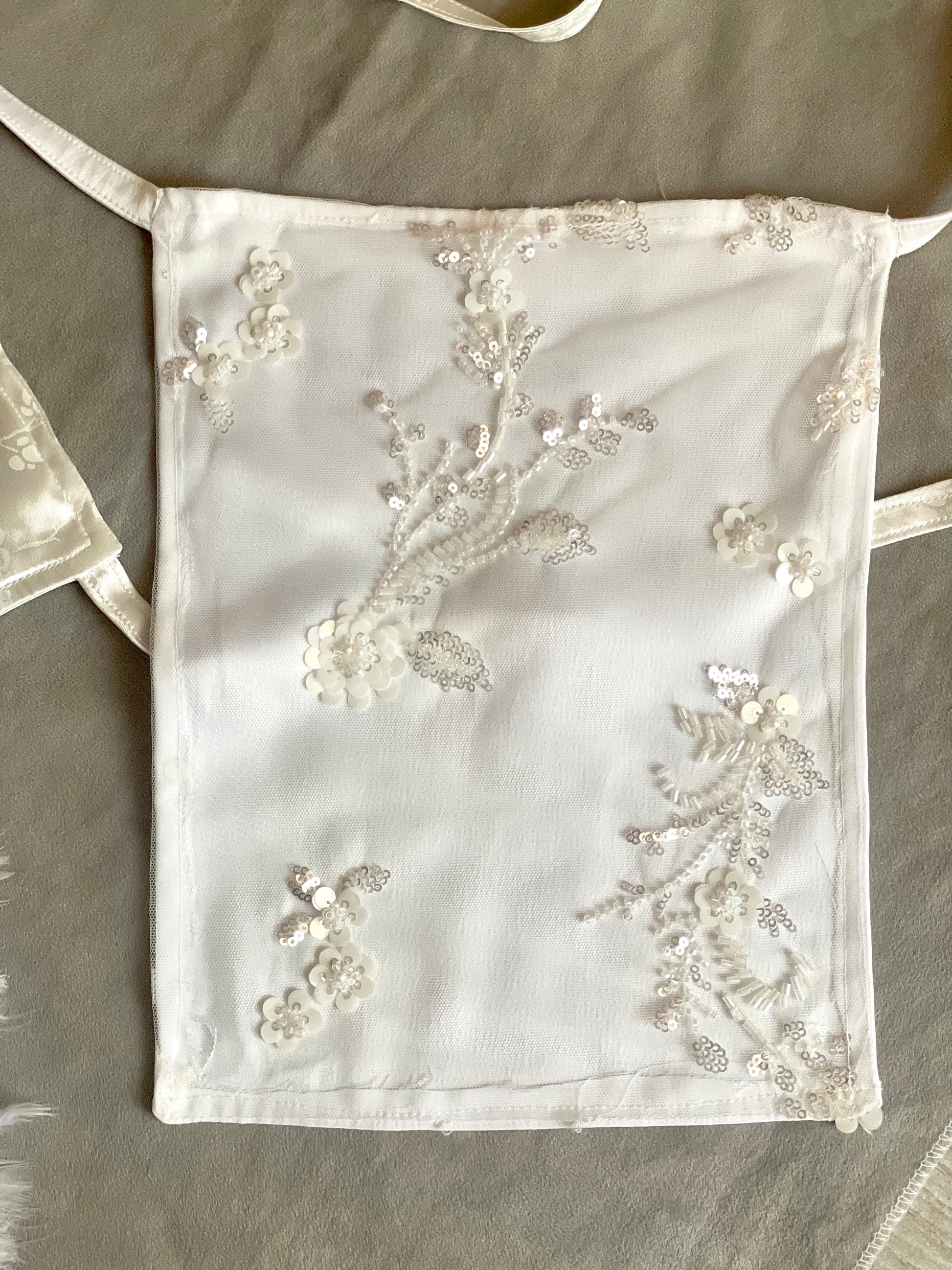 ✨ Patterned Satin Bridal Niqab – made from soft satin with a subtle floral patterned finish, offering graceful simplicity with a touch of refinement.