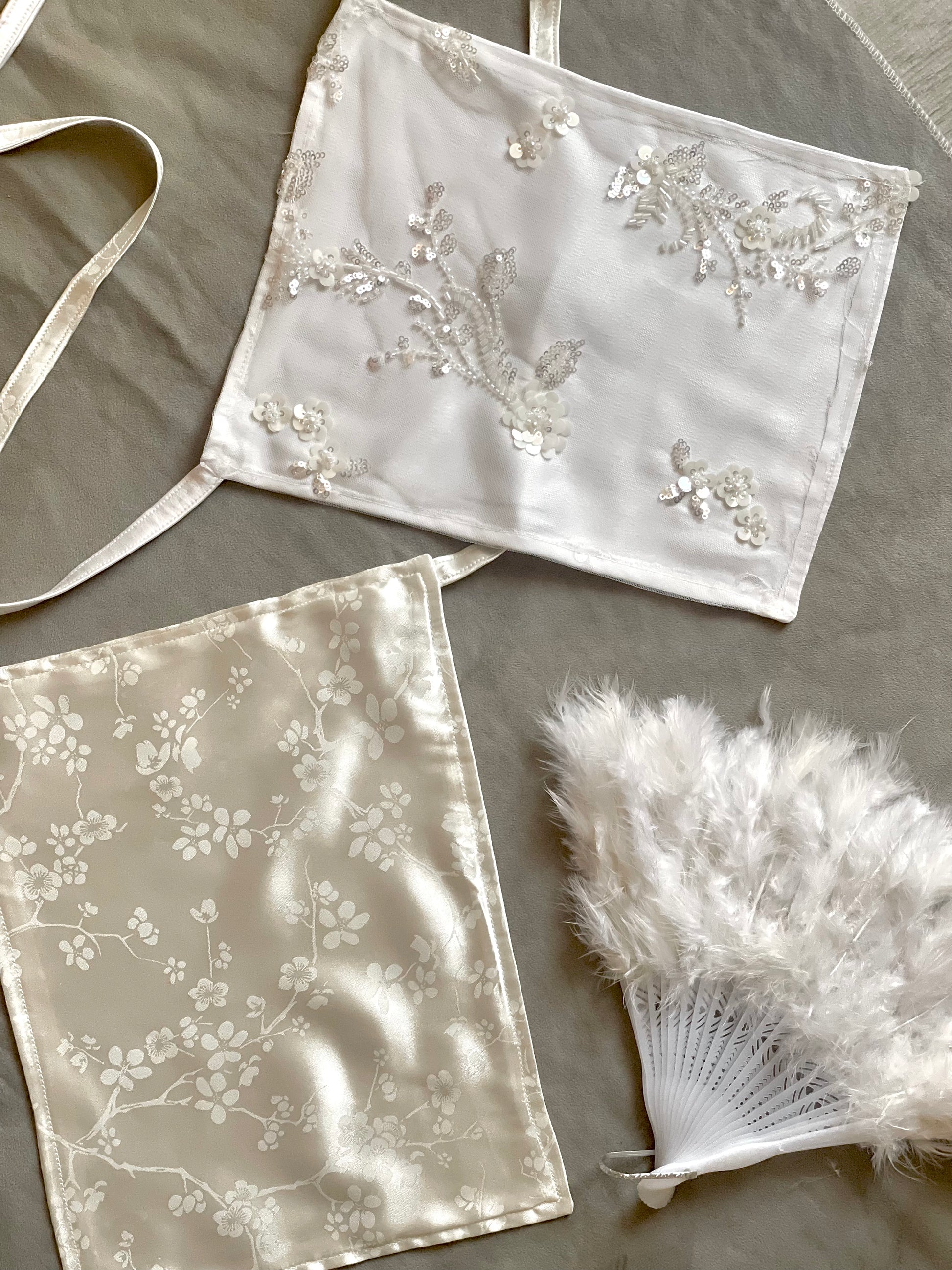Elegant Off-White Bridal Niqabs – Satin & Beaded Tulle Styles